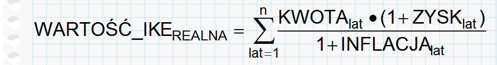 Wartość końcowa (realna) inwestycji w IKE przez n lat z uwzględnieniem inflacji: